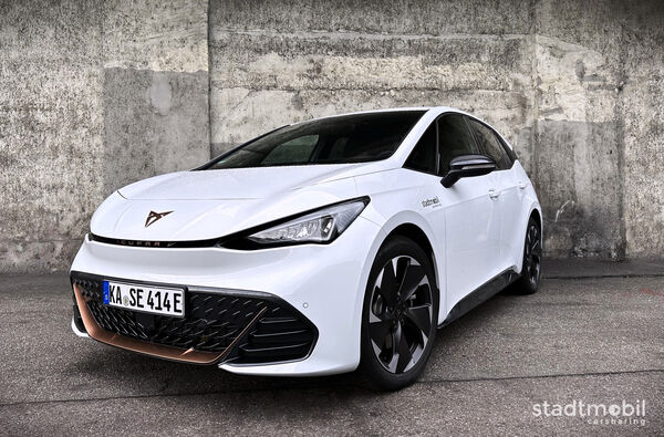 Der E-Cupra fällt wegen seines sportlichen Designs sofort ins Auge und punktet mit seiner Geräumigkeit. Schnelles Laden und eine Reichweite von ca. 300 km ermöglichen längere Fahrten und Ausflüge.